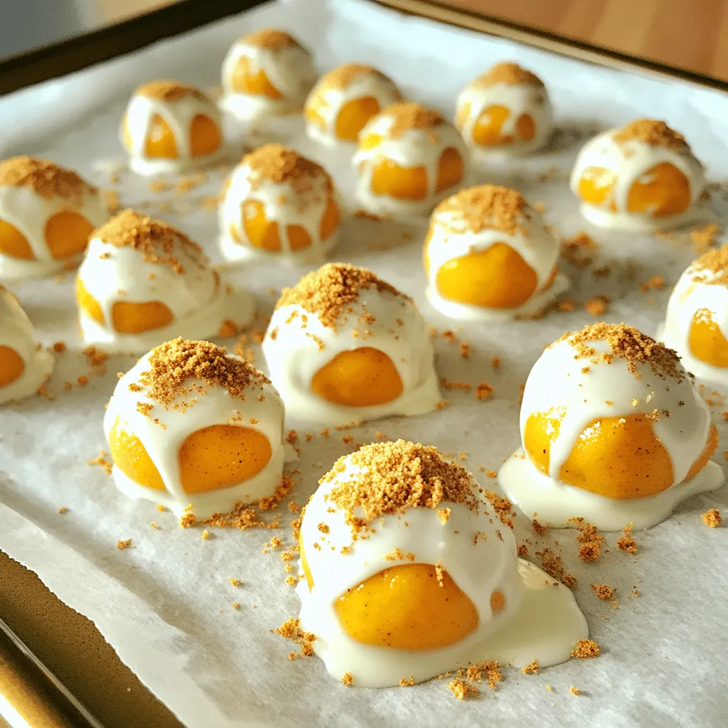 To make Pumpkin Cheesecake Truffles, you need a few key ingredients. These items create a rich and flavorful treat. Here’s what you’ll need: - 8 oz cream cheese, softened - 1 cup pumpkin puree - 1/2 cup powdered sugar - 1 teaspoon vanilla extract - 1 teaspoon pumpkin pie spice - 1 cup graham cracker crumbs - 1 cup white chocolate chips - 1 tablespoon coconut oil - Pinch of sea salt These ingredients work together to give the truffles their creamy texture and warm fall flavor. The cream cheese adds richness, while the pumpkin brings moisture and taste. The powdered sugar sweetens the mixture, and vanilla extract adds depth. Pumpkin pie spice brings that classic fall flavor we all love. Graham cracker crumbs provide the perfect crunch, making each bite interesting. The white chocolate coating adds sweetness and a lovely finish. Coconut oil helps the chocolate melt smoothly and harden nicely. Finally, a pinch of sea salt balances all the flavors. With these ingredients, you’re ready to create a delicious fall treat that everyone will love! To start, gather your ingredients. In a large bowl, combine these items: - 8 oz cream cheese, softened - 1 cup pumpkin puree - 1/2 cup powdered sugar - 1 teaspoon vanilla extract - 1 teaspoon pumpkin pie spice - Pinch of sea salt Mix these together until the mixture is smooth and creamy. This step is key for a rich flavor. Once mixed, add in the graham cracker crumbs. Stir until everything is well combined. Next, cover the bowl with plastic wrap and chill the mixture in the fridge for about 1 to 2 hours. This helps it firm up, making it easier to handle. Once it’s chilled, use a small cookie scoop or your hands to scoop out the mixture. Roll each scoop into balls, about 1 inch in size. Place these on a parchment-lined baking sheet. For extra firmness, freeze the truffles for 30 minutes. This step is important for easy coating later on. While the truffles chill, melt your white chocolate and coconut oil. Use a microwave-safe bowl and heat in 30-second intervals. Stir after each interval until it’s smooth. When ready, take the truffles from the freezer. Using a fork, dip each truffle into the melted chocolate. Make sure each truffle is coated evenly. Let any excess chocolate drip off before placing them back on the parchment paper. If you want, sprinkle extra graham cracker crumbs or pumpkin pie spice on top of the truffles. This adds a nice touch. Allow the truffles to sit at room temperature until the chocolate hardens. You can also speed this up by placing them in the fridge for about 15 minutes. Enjoy your delightful Pumpkin Cheesecake Truffles! To get the right texture for your truffles, the cheesecake mixture should be smooth and creamy. It needs to be thick enough to hold its shape when scooped. If it’s too runny, add a bit more graham cracker crumbs. Chill the mixture for 1 to 2 hours before shaping. This time allows it to firm up, making it easier to roll into balls. You can make your truffles even more special with fun toppings. Consider using crushed graham crackers, cinnamon, or mini chocolate chips. Each topping adds a unique twist. For flavor, try adding a pinch of nutmeg or even a splash of maple syrup to the mixture. This can give your truffles a different taste that might surprise your friends. Serve the truffles on a nice plate or in cupcake liners for a fun touch. They look great and make for easy serving. Pair these treats with hot cider, coffee, or even a sweet dessert wine. The flavors complement each other well and make your treat time even more enjoyable. {{image_2}} You can easily add your twist to these truffles. Try different spices like cinnamon or nutmeg. These spices can enhance the warm flavors. You can also use dark chocolate instead of white. Dark chocolate gives a richer taste that pairs well with pumpkin. If you want a gluten-free treat, simply use gluten-free graham crackers. They work just as well in this recipe. For a vegan option, swap the cream cheese for a vegan cream cheese. You can also use maple syrup instead of powdered sugar for sweetness. How you present these truffles can make them extra special. You can package them in small boxes tied with ribbons for gifts. This adds a nice touch for friends or family. For serving, arrange them on a festive platter. You can also use cupcake liners for an attractive display. To keep your Pumpkin Cheesecake Truffles fresh, store them properly. Place them in an airtight container. This keeps moisture out and flavor in. In the fridge, they stay tasty for up to a week. Be sure to layer them with parchment paper to avoid sticking. If you want to save some for later, freezing is a great option. Freeze the truffles on a baking sheet first. After they’re firm, transfer them to a freezer-safe bag. They can last up to three months in the freezer. Just remember to label the bag with the date! To enjoy your truffles at their best, follow some best practices. Keep them in the fridge for no more than a week. If you see any moisture on the surface, it's time to toss them. Signs of spoilage include a change in color or a sour smell. If you notice these signs, don’t eat them. It's better to be safe than sorry! Yes, you can use fresh pumpkin! Fresh pumpkin adds bright flavor and a lovely texture. It is fun to roast and puree your own pumpkin. The fresh kind can feel more natural without added preservatives. However, it can be more work than using canned pumpkin. Canned pumpkin is often more convenient and consistent. It gives you a smooth base for your truffles. If you choose fresh, make sure to cook it well and drain any excess water. These truffles are tasty for up to one week when stored correctly. Keep them in an airtight container in the fridge. This helps keep them fresh and firm. If you want to save them for longer, you can freeze the truffles. They last up to three months in the freezer. To thaw, just place them in the fridge overnight. Enjoy them chilled for the best 