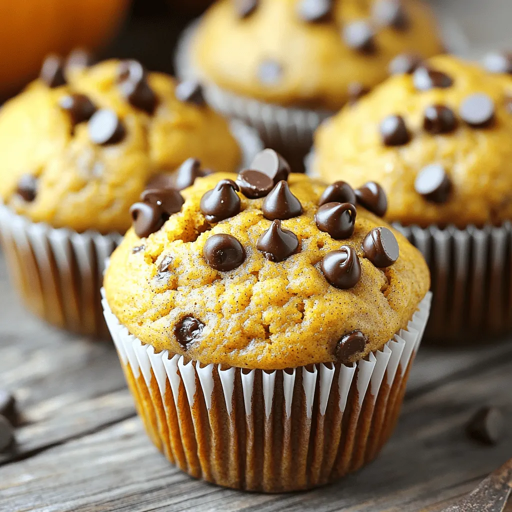 ![- 1 cup pure pumpkin puree - 1/2 cup brown sugar - 1/4 cup granulated sugar - 2 large eggs - 1/4 cup vegetable oil These main ingredients bring rich flavor and moisture to our muffins. Pumpkin puree makes the muffins soft and adds a lovely orange hue. The brown sugar gives a deep sweetness, while the granulated sugar balances it out. Eggs help bind everything together, while oil keeps them moist. - 1 1/2 cups all-purpose flour - 1 teaspoon baking powder - 1/2 teaspoon baking soda - 1/2 teaspoon cinnamon - 1/4 teaspoon nutmeg - 1/4 teaspoon ginger - 1/4 teaspoon salt The dry ingredients are key to the muffins’ texture. All-purpose flour forms the base for structure. Baking powder and baking soda make the muffins rise and stay fluffy. Spices like cinnamon, nutmeg, and ginger add warmth and flavor, while salt enhances the sweetness. - 1 cup semi-sweet chocolate chips Chocolate chips are the star of these muffins. They melt slightly during baking, creating pockets of gooey goodness. Each bite bursts with rich chocolate flavor, making these muffins a treat. You’ll love how the chocolate pairs with the pumpkin spices. For the full recipe, check out the details above. 1. Preheating the oven: Start by preheating your oven to 350°F (175°C). This step warms your oven and helps the muffins rise well. 2. Mixing wet ingredients: In a large bowl, whisk together 1 cup of pumpkin puree, 1/2 cup of brown sugar, 1/4 cup of granulated sugar, 2 large eggs, 1/4 cup of vegetable oil, and 1 teaspoon of vanilla extract. Mix until smooth and well blended. 3. Combining dry ingredients: In a separate bowl, sift together 1 1/2 cups of all-purpose flour, 1 teaspoon of baking powder, 1/2 teaspoon of baking soda, 1/2 teaspoon of cinnamon, 1/4 teaspoon of nutmeg, 1/4 teaspoon of ginger, and 1/4 teaspoon of salt. This helps mix the dry items evenly. 1. Folding in chocolate chips: Gradually add the dry mix to the wet mix. Stir gently until just combined. It’s okay if there are small lumps. Then, fold in 1 cup of semi-sweet chocolate chips to distribute them throughout the batter. 2. Filling muffin cups: Line a muffin tin with paper liners or grease it lightly. Divide the batter evenly among the muffin cups, filling each about 2/3 full. This gives them room to rise. 3. Baking time and temperature: Place the muffin tin in the preheated oven. Bake for 18-20 minutes. Check if they are done by inserting a toothpick in the center. If it comes out clean, your muffins are ready! 1. Cooling in the pan: After baking, let the muffins cool in the pan for about 5 minutes. This helps them set before moving. 2. Transferring to a wire rack: Carefully transfer the muffins to a wire rack to cool completely. This prevents sogginess and keeps them fluffy. 3. Serving suggestions: Serve warm or at room temperature. These muffins pair great with a cup of coffee or tea. They make a tasty breakfast or snack. For the full recipe, check out the [Full Recipe]. To ensure your muffins rise properly, always preheat your oven. A hot oven helps the muffins rise quickly. Use fresh baking powder and baking soda for best results. These ingredients give the muffins lift. Avoiding overmixing is key to soft muffins. When you mix, do it gently. Mix until the dry ingredients are just combined with the wet ones. A few lumps in the batter are just fine. You can enhance the flavor of your muffins in simple ways. Adding nuts like walnuts or pecans gives a nice crunch. Dried fruits like cranberries or raisins add sweetness. Using different types of chocolate can change things up. Try dark chocolate chips for a richer taste. You can even mix semi-sweet with milk chocolate for fun flavor twists. For the best muffins, use a non-stick muffin tin. Silicone muffin tins work great too. They make it easy to pop out the muffins. Choose paper liners that fit your muffin tin well. This will help keep the muffins moist and easy to serve. For mixing and measuring, a large mixing bowl is best. A whisk helps mix wet ingredients smoothly. Use a spatula to gently fold in the dry ingredients and chocolate chips. For the full recipe, check out the details above and enjoy your baking! {{image_2}} If you need a gluten-free option, you can use gluten-free flour. Many brands offer great blends. Just swap the all-purpose flour with a gluten-free mix. Ensure the mix has xanthan gum for good texture. This helps your muffins stay moist and fluffy. For a dairy-free version, you can use almond milk or oat milk. These alternatives work well in this recipe. You can also replace the vegetable oil with coconut oil or avocado oil. Both will add a nice flavor. You can add cranberries or apples for a fun twist. These fruits bring a sweet-tart flavor that pairs well with pumpkin. You might also adjust the spices. Try adding more cinnamon in fall or a hint of nutmeg in winter. This keeps your muffins exciting all year round. Check out the Full Recipe for more details on making these delicious muffins! To keep your pumpkin chocolate chip muffins fresh, use an airtight container. This helps lock in moisture and flavor. Store them at room temperature for up to three days. If you want them to last longer, refrigerate them. Just remember to let them cool completely before you store them. Freezing muffins is a smart way to save them for later. First, wrap each muffin in plastic wrap. Then, put the wrapped muffins in a freezer bag. Remove as much air as you can. They stay fresh for about three months in the freezer. When you want one, just take it out and let it thaw at room temperature. To enjoy your muffins warm, use an oven or microwave. For the oven, preheat it to 350°F (175°C). Place the muffins on a baking sheet and heat for about 10 minutes. If you use a microwave, heat one muffin for about 15-20 seconds. This warms it up and keeps it moist. Enjoy your muffins just like they came out of the oven! To check if the muffins are done, use a toothpick. Insert it into the center of a muffin. If it 