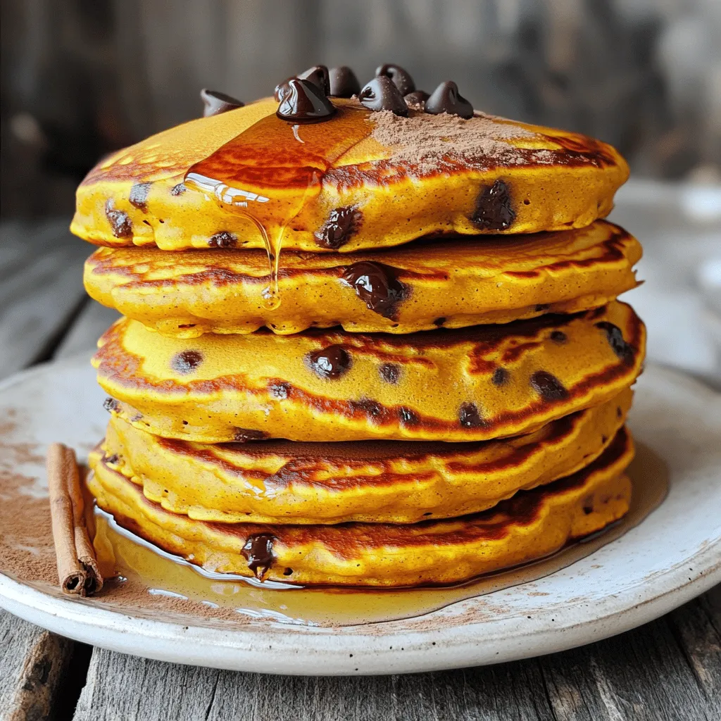 These steps guide you to make pumpkin chocolate chip pancakes that are soft and delicious. Enjoy your cooking!