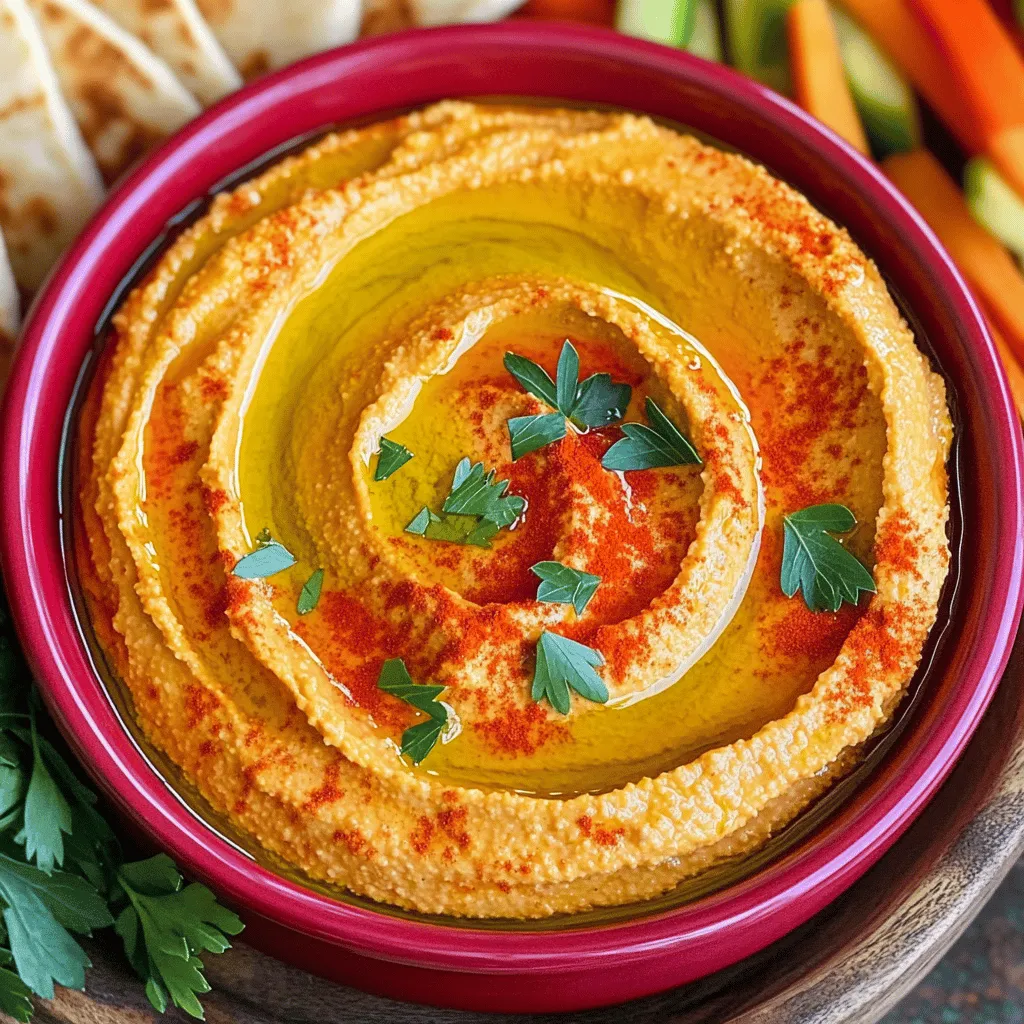 Chickpeas are the star of this dish. They give hummus its creamy texture and protein. Roasted red peppers add a sweet, smoky flavor. You can buy them ready-made or roast your own. Tahini, made from sesame seeds, gives richness. Olive oil adds smoothness and flavor.