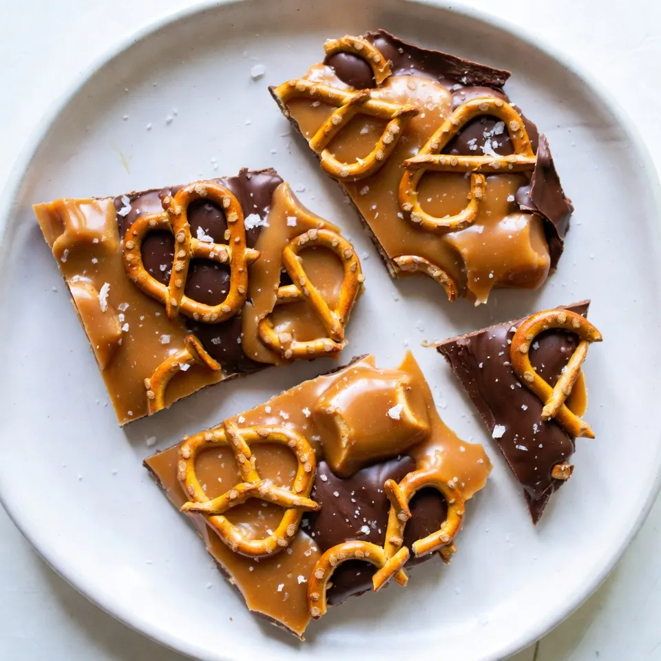 Keyword bark, caramel, dessert, pretzel