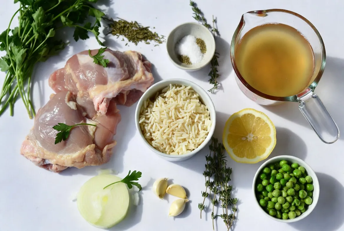 Add Rice and Broth: Layer the long-grain rice over the chicken. Pour the chicken broth over everything, ensuring the rice is submerged. Add the remaining lemon zest, oregano, thyme, and rosemary.