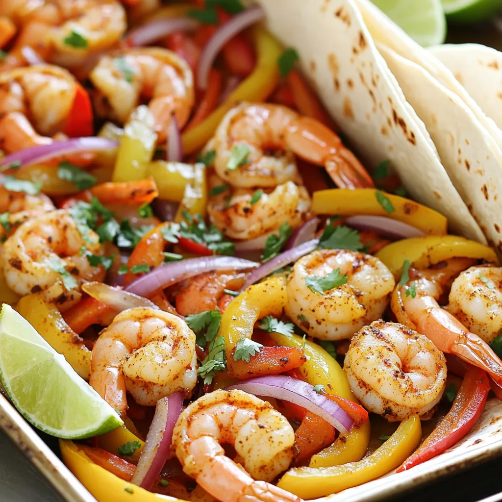 - 1 pound large shrimp, peeled and deveined - 2 bell peppers (red and yellow), sliced - 1 red onion, thinly sliced - 3 tablespoons olive oil - 2 tablespoons chipotle powder - 2 teaspoons smoked paprika - 1 teaspoon garlic powder - 1 teaspoon cumin - Zest and juice of 2 limes - Salt and pepper, to taste - 8 small flour tortillas - Fresh cilantro, chopped (for garnish) - Lime wedges, for serving Using these ingredients, you set the stage for a flavorful meal. The large shrimp add a sweet taste, while the colorful bell peppers and red onion bring crunch and freshness. The seasoning mix is key to that bold chipotle flavor. The lime juice brightens everything, making each bite zesty and fun. For serving, warm tortillas hold all the delicious filling. Fresh cilantro adds a pop of color and taste. Lime wedges on the side give that extra zing. Each ingredient works together to create a dish that is not just tasty but also vibrant and inviting. - Preheat the oven to 400°F (200°C). - In a large bowl, combine 1 pound of large shrimp, 2 sliced bell peppers, and 1 thinly sliced red onion. This mix gives a colorful start to your dish. - In a small bowl, whisk together 3 tablespoons of olive oil, 2 tablespoons of chipotle powder, 2 teaspoons of smoked paprika, 1 teaspoon of garlic powder, 1 teaspoon of cumin, the zest and juice of 2 limes, and a pinch of salt and pepper. This blend makes your shrimp and veggies pop with flavor. - Pour the seasoning mixture over the shrimp and vegetables, tossing well to coat everything evenly. This step ensures that each bite is packed with taste. - Spread the shrimp and vegetable mixture on a baking sheet in a single layer. This helps everything cook evenly and brown nicely. - Bake for 15 minutes. You’ll know it’s done when the shrimp turn pink and the vegetables become tender. - While your fajitas bake, warm 8 small flour tortillas in a dry skillet over medium heat for about 30 seconds on each side. This step makes the tortillas soft and easy to fold, perfect for holding your delicious fillings. - Ensure shrimp are fully peeled and deveined for best texture. This makes them tender and easy to eat. - Use fresh ingredients for enhanced flavor. Fresh bell peppers and onions bring a crispness that dried ones can't match. - Pair with avocado slices or sour cream for creaminess. This adds a nice balance to the spicy shrimp. - Consider adding cheese or hot sauce for extra flavor. A sprinkle of cheese can make your fajitas even richer. - Prep ingredients in advance for a quick weeknight meal. You can slice peppers and onions ahead of time. - Use a non-stick baking sheet to avoid sticking. This makes cleanup easy and helps everything cook evenly. {{image_2}} You can easily switch the shrimp for chicken or tofu. Both options work well and add different flavors. If you want to make the dish more colorful, try using different colored bell peppers. Green, orange, or even purple peppers can brighten up your plate. If you love spice, add more chipotle powder to the mix. It gives the dish a nice kick! You can also try different citrus juices like lemon or orange. Each juice brings a unique taste that can change the whole dish. For a healthier twist, use whole wheat or corn tortillas instead of flour. This small change boosts nutrition. You can also increase the vegetable portion. Adding more veggies lowers the calorie count and makes the dish more filling. After you enjoy your meal, store leftovers in an airtight container. This keeps them fresh. For the best taste, eat them within three days. The flavors will stay bright, and the shrimp will remain tender. If you want to save some for later, freeze the cooked fajitas in portions. This makes it easy to heat up quick meals. When you're ready to eat, reheat them in the oven or microwave. Both methods work, but the oven keeps them crispy. When reheating, I suggest using the oven instead of the microwave. This keeps the shrimp and veggies from getting soggy. To prevent drying out, add a splash of water before warming. This little trick helps keep your fajitas juicy and delicious. Yes, you can prep ingredients and store in the fridge before baking. This makes it easy to whip up a quick dinner. Just chop the veggies and clean the shrimp. Mix the seasoning and keep it in a small bowl. When you're ready, toss everything together and bake. Smoked paprika or cayenne pepper can serve as substitutes. Both give a nice flavor kick. If you want a milder taste, smoked paprika works well. For a spicier option, go with cayenne pepper. Just adjust the amount based on your heat preference. Use gluten-free tortillas to make the meal gluten-free. Many brands offer tasty options. Just check the label to be sure. You can enjoy these fajitas without worry if you stick to gluten-free tortillas. This recipe for sheet-pan shrimp fajitas combines fresh flavors and easy steps. You learned about the essential ingredients, like shrimp and bell peppers, and how to mix them with spices. Baking creates a quick meal that bursts with taste. Remember to store leftovers correctly for later enjoyment. You can also switch up proteins or add more veggies to suit your taste. This dish is not only fun to make but also great for any night. Enjoy your cooking adventure and explore personal twists on this recipe!