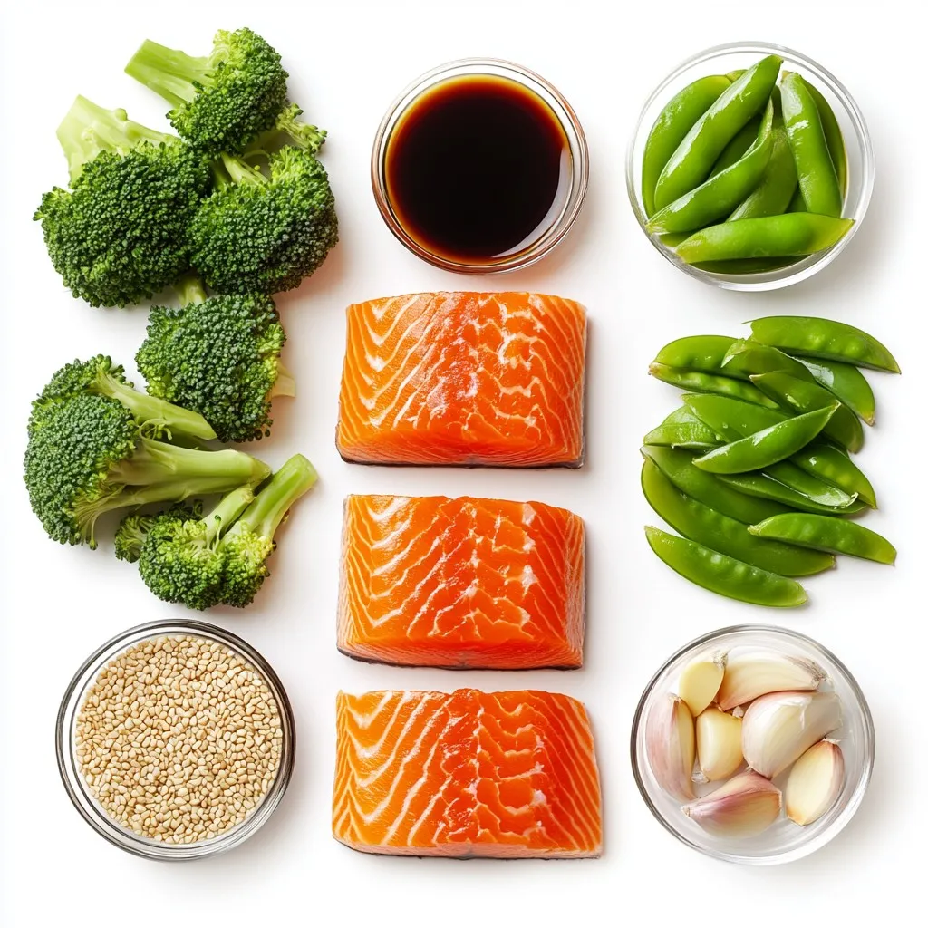 To make Sheet Pan Teriyaki Salmon & Veggies, you need fresh ingredients. The salmon fillets are the star of the dish. They offer a rich flavor and firm texture. I use 4 fillets, each weighing 6 ounces.