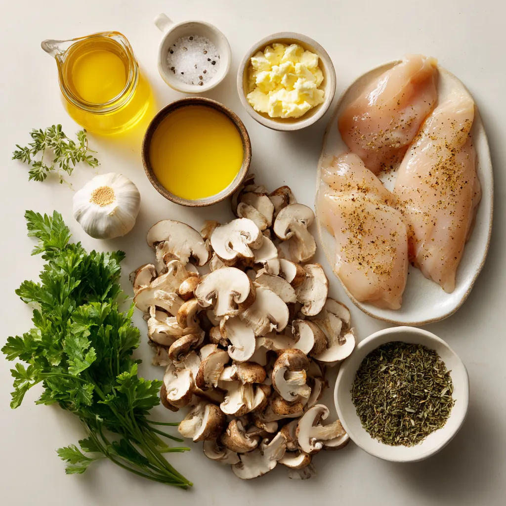 Lastly, you need olive oil and butter for cooking. They help the chicken brown nicely and add flavor. Fresh parsley is perfect for garnishing. It adds color and a fresh taste.