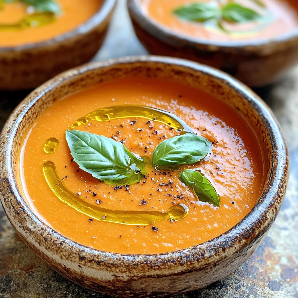 For a beautiful look, garnish each bowl with fresh basil leaves. A drizzle of extra virgin olive oil adds a nice touch too. Serve your soup with crusty bread for a warm and filling meal. It’s perfect for dipping!