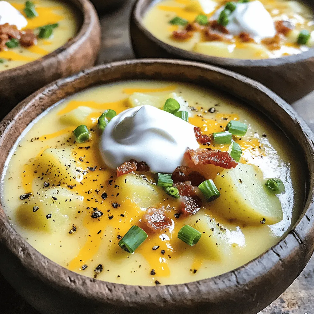 These ingredients come together to create a rich and creamy soup. The russet potatoes give it a hearty base, while the onion and garlic add depth. The cream provides a velvety texture. Cheese and bacon bits bring extra flavor and warmth. You can easily adjust the toppings to suit your taste. Enjoy this cozy dish that warms you from the inside out!