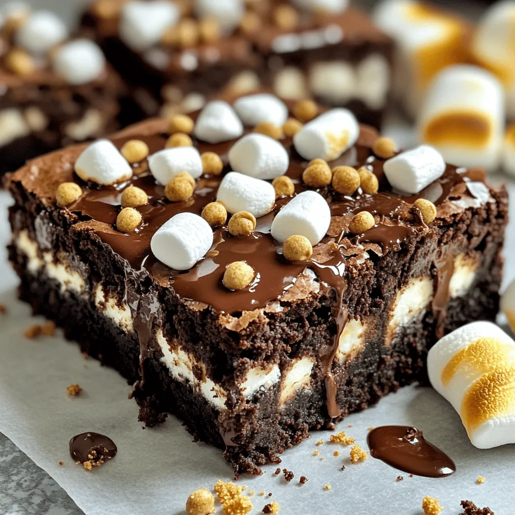 Toppings can change your brownie game! Besides marshmallows and chocolate chips, consider crushed nuts or toffee bits for crunch. For a fun twist, sprinkle some sea salt on top after baking. This adds a savory touch that pairs well with the sweet. You can also drizzle caramel sauce over the brownies for extra sweetness.