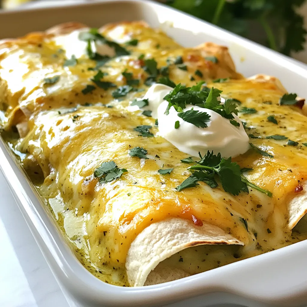 • Prepare Baking Dish: Preheat your oven to 375°F (190°C). Spread a thin layer of green chili enchilada sauce over the bottom of a large baking dish.