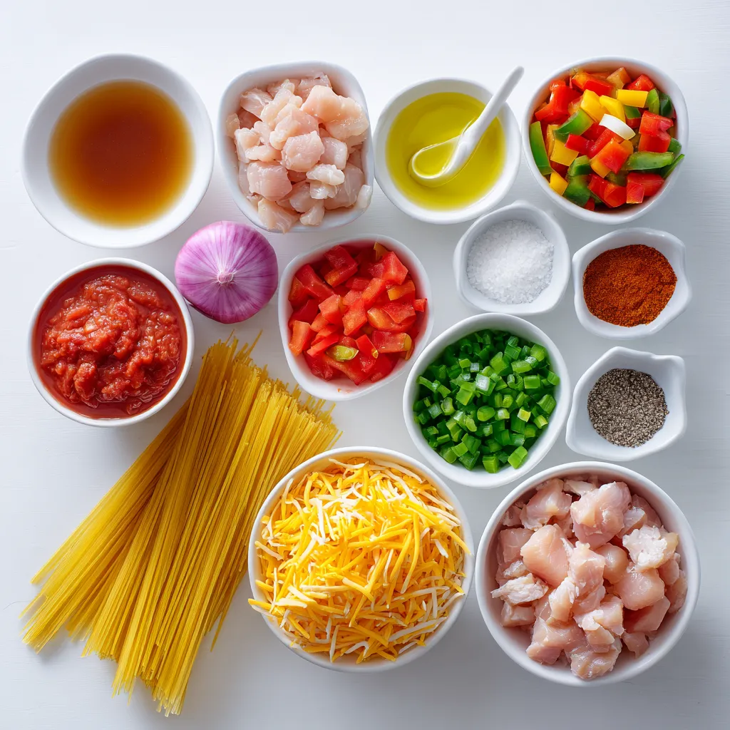 The chicken is the heart of the meal. I prefer using boneless, skinless chicken breasts. They cook evenly and soak up the spices well. The spaghetti adds the perfect comfort base. I always choose a good-quality pasta for the best texture.