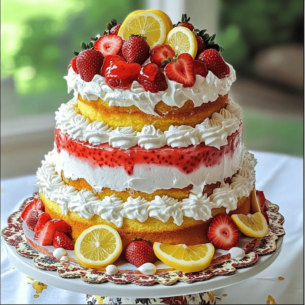 Get creative with your strawberries! You can slice them and layer them between the cake layers. You can also arrange whole strawberries on top for a fresh look. Using lemon slices adds a nice pop of color.