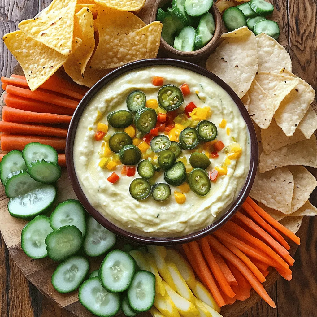 To make the Sweet and Spicy Pickle Dip, you need just a few key ingredients. Here's what you'll need: - 1 cup cream cheese, softened - 1/2 cup mayonnaise - 1 cup dill pickles, finely chopped - 1/4 cup pickled jalapeños, finely chopped - 2 tablespoons honey - 1 teaspoon garlic powder - 1 teaspoon onion powder - 1 tablespoon Dijon mustard - 1/4 teaspoon smoked paprika - Salt and pepper to taste These ingredients create a rich, creamy dip with a sweet and spicy kick. The dip shines with a variety of dippers. You want to balance flavors and textures. Here are some great choices: - Tortilla chips - Pita bread - Sliced veggies like carrots, cucumbers, and bell peppers - Crackers Mix and match these dippers for your board. Each one brings a unique taste and crunch. To make your dip board look even more inviting, consider adding some garnishes. They add color and flair. Here are some fun options: - Chopped pickles - Finely diced jalapeños - A sprinkle of smoked paprika These little touches make your Sweet and Spicy Pickle Dip Board not just tasty, but also beautiful. For the complete recipe, check the [Full Recipe]. To start, gather your ingredients. You need cream cheese, mayonnaise, dill pickles, jalapeños, honey, garlic powder, onion powder, Dijon mustard, smoked paprika, salt, and pepper. First, mix the softened cream cheese and mayonnaise until smooth. You can use an electric mixer or a spatula for this. Next, add the finely chopped dill pickles and jalapeños. Stir until they are well blended. Now, drizzle in the honey and add the garlic powder, onion powder, Dijon mustard, and smoked paprika. Mix until everything is combined. Season with salt and pepper to your liking. When done, transfer the dip to a serving dish and smooth the top with a spatula. For the dip board, choose a large platter or cutting board. Place the dip in the center. Arrange your dippers around the dip. You can use tortilla chips, pita bread, sliced veggies like carrots, cucumbers, and bell peppers, and crackers. Make it fun! Balance colors and shapes for a great look. I love to add a touch of flair to my dip board. You can garnish the top of the dip with extra chopped pickles or jalapeños. A sprinkle of smoked paprika adds a nice pop of color too. Serve the board with small spoons or toothpicks for easy sharing. This Sweet and Spicy Pickle Dip Board is perfect for parties or game days. Enjoy every bite! Don’t forget to check the Full Recipe for more details. Mixing the dip well is key. Start by blending cream cheese and mayonnaise. This smooth base helps your flavors blend nicely. Add the chopped pickles and jalapeños next. Stir until you see a nice mix. Taste it! If it feels off, adjust with more honey or mustard. Remember, balance is crucial. Sweet, spicy, and tangy should all shine through. You can prep this dip a day ahead. Just keep it in the fridge. When you’re ready, take it out and let it warm a bit. This helps flavors pop. Arrange your dippers right before serving for a fresh look. If you want to save time, chop your veggies a day early too. It makes party prep easy. To add texture, consider mixing in some crispy elements. Chopped nuts or crispy onions can work wonders. They add crunch that contrasts nicely with the creamy dip. You can also play with herbs, like fresh dill or cilantro, for a fresh twist. Try adding a squeeze of lemon juice for an extra zing. Little details can turn a good dip into a great one. For the full recipe, check out [Full Recipe]. {{image_2}} You can change the heat in the Sweet and Spicy Pickle Dip by swapping ingredients. If you want more heat, add more jalapeños or use a hotter pepper. You might try adding diced serrano peppers for a kick. For less heat, skip the jalapeños. Instead, use sweet pickle relish. This keeps the flavor but reduces the spice. To make this dip vegetarian, simply keep all the original ingredients. For a vegan version, swap the cream cheese and mayonnaise with plant-based options. Look for vegan cream cheese and mayo made from nuts or soy. These alternatives keep the dip creamy and flavorful without using animal products. You can enhance the dip by adding seasonal ingredients. In summer, use fresh herbs like dill or basil. In fall, consider adding roasted pumpkin or butternut squash. These ingredients add fun flavors and colors to the dip board. They also bring a fresh twist to the classic recipe. Feel free to explore and create your own versions. You can find the Full Recipe for more ideas. To keep your Sweet and Spicy Pickle Dip fresh, store it in an airtight container. This helps to lock in flavors and prevent the dip from drying out. Make sure to refrigerate it right after your event. If you leave it out, bacteria can grow, making it unsafe to eat. You can freeze the dip if you have extra. Use a freezer-safe container and leave some space at the top. This allows for expansion. When you are ready to eat it, thaw the dip in the fridge overnight. Stir well before serving to bring back its creamy texture. The dip stays fresh in the fridge for about 3 to 5 days. Always check for signs of spoilage, like changes in smell or color. For the best taste, eat it within this time. Enjoy your dip while it's at its best! For the full recipe, check out the Sweet and Spicy Pickle Dip Board. The best dippers are fun and crunchy. I love using tortilla chips and pita bread. Sliced veggies like carrots, cucumbers, and bell peppers add fresh flavor. Crackers are also a great choice. They give a nice crunch and hold the dip well. Mix and match your dippers for a colorful spread. Yes, you can! Different pickles add unique flavors. Try bread-and-butter pickles for sweetness. You can also use spicy pickles for extra heat. Just make sure to chop them finely. This way, they mix well into the dip. Experiment with your favorites to find the best taste! Yes, this dip is gluten-free! The main ingredients, like cream cheese and mayonnaise, contain no gluten. Just be careful wit