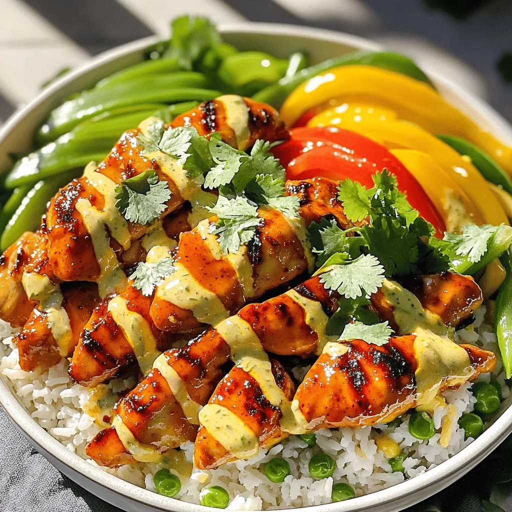 Indulge in a delicious Sweet Chili Chicken Bowl with Coconut Lime Drizzle that’s sure to brighten your meal! This flavorful dish features marinated chicken, vibrant bell peppers, and creamy coconut jasmine rice topped with a zesty lime sauce. Perfect for a quick weeknight dinner or meal prep, this recipe is easy to follow and packed with taste.