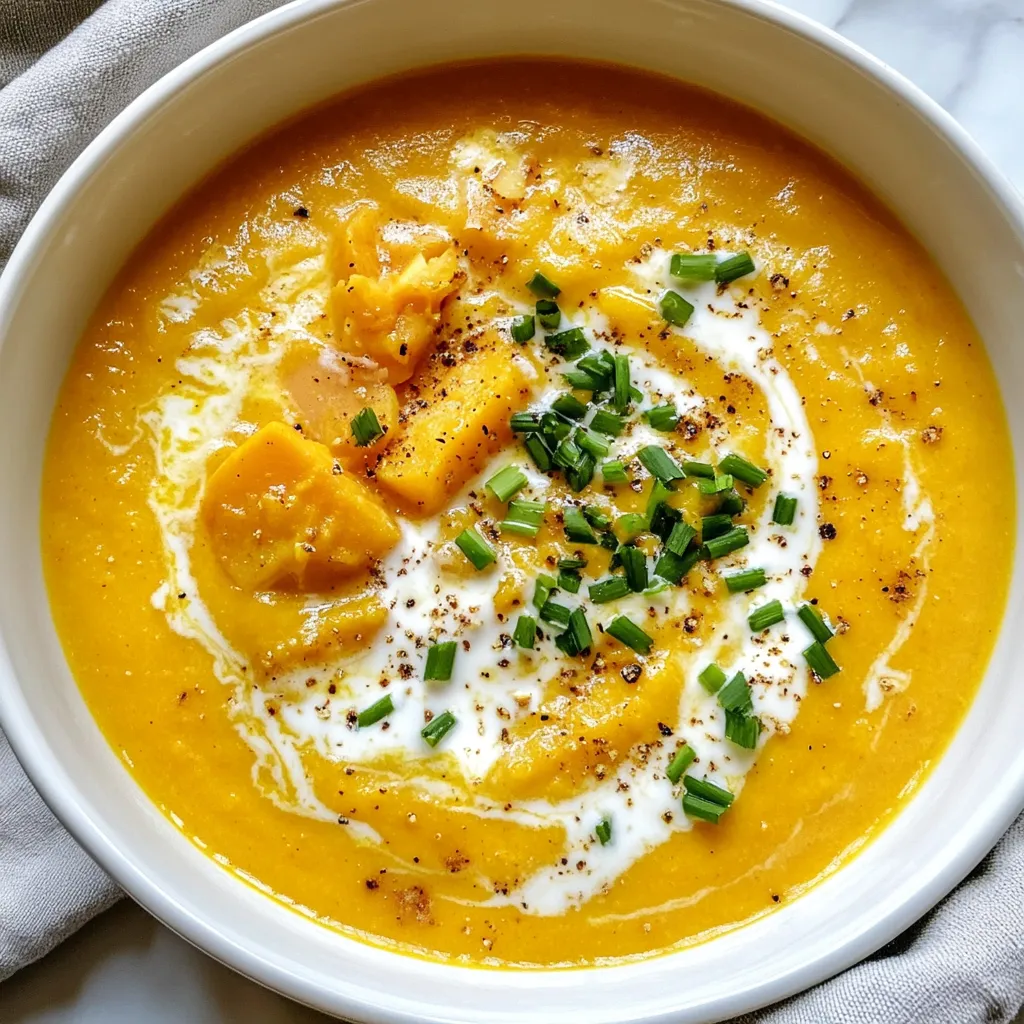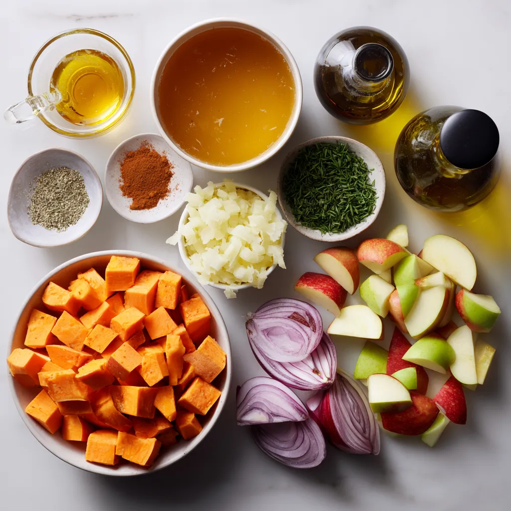 - 2 medium sweet potatoes, peeled and diced - 2 large apples (Granny Smith or Honeycrisp), peeled, cored, and diced - 1 medium onion, chopped - 2 cloves garlic, minced - 4 cups vegetable broth - 1 teaspoon ground cinnamon - 1/2 teaspoon ground nutmeg - Salt and pepper to taste - 2 tablespoons olive oil - 1 tablespoon maple syrup (optional) - 1/4 cup coconut cream (for garnish) - Chopped chives or parsley (for garnish) Sweet potatoes and apples make this soup unique. The sweet potatoes give it a creamy base. The apples add a touch of sweetness and tartness. Each bite feels like a warm hug. You need the right apples. I like Granny Smith for a tart taste. Honeycrisp apples work for a sweeter flavor. Both pair well with sweet potatoes. The spices enhance the taste. Ground cinnamon brings warmth. Nutmeg adds depth. Feel free to adjust these spices to your liking. Salt and pepper balance flavors. Olive oil is key for sautéing. It helps to cook the onion and garlic. This step adds a rich flavor to the whole soup. Coconut cream is optional but makes a lovely garnish. It adds creaminess and richness. You can also use chopped herbs for a fresh touch. This soup is simple and fun to make. Gather your ingredients and enjoy this cozy dish. {{ingredient_image_1}} - Heat 2 tablespoons of olive oil in a large pot over medium heat. - Add 1 medium chopped onion and 2 minced cloves of garlic. Sauté for about 3-4 minutes. You want the onion to become soft and translucent. - Next, stir in 2 medium diced sweet potatoes and 2 diced apples. Cook for another 5 minutes. - Season your pot with 1 teaspoon of ground cinnamon, 1/2 teaspoon of nutmeg, salt, and pepper. Stir well to mix the flavors. - Pour in 4 cups of vegetable broth and bring the mixture to a boil. This step helps to blend all the tastes. - Once boiling, reduce the heat and let it simmer for 20-25 minutes. Check that the sweet potatoes are tender. - Remove the pot from heat. Use an immersion blender to blend the soup until it is smooth and creamy. If you don’t have one, you can use a countertop blender in batches. - Taste the soup and adjust the seasoning if you need. If you want it sweeter, stir in 1 tablespoon of maple syrup. - Ladle the soup into bowls. Swirl in a spoonful of coconut cream for a rich touch. - Finish by topping with chopped chives or parsley for a fresh flavor. When making sweet potato apple soup, the right apples matter. I recommend using Granny Smith or Honeycrisp apples. Both add great flavor. Granny Smith offers a tart taste, while Honeycrisp gives a sweet touch. Sweet apples make the soup richer, while tart ones add brightness. Mix sweet and tart for a balanced flavor. To get the texture just right, use a blender. An immersion blender works best for smooth soup. If you like a chunky soup, blend just half the mixture. You can also mash some sweet potatoes with a fork. This keeps some chunks while still being creamy. Consider your preference when blending. You can elevate the flavor with spices. Try adding a pinch of ginger for warmth. A dash of cayenne can add some heat. You can also use vegetable broth for a deeper taste. If you want a richer flavor, swap in chicken broth. Experiment with these options to find what you love best. Pro Tips Choose Your Apples Wisely: Select tart apples like Granny Smith for a balanced flavor or sweet varieties like Honeycrisp if you prefer a sweeter soup. Texture Matters: For a creamier soup, blend until completely smooth. If you like a bit of texture, blend only part of the soup and leave some chunks for interest. Spice It Up: Feel free to experiment with additional spices such as ginger or a pinch of cayenne for an extra kick! Garnish for Flavor: The garnishes of coconut cream and fresh herbs not only add visual appeal but also enhance the overall flavor profile of the soup. {{image_2}} You can easily add protein to your sweet potato apple soup. Lentils or beans work great. They not only boost protein but also add texture. If you want something heartier, try shredded chicken. It pairs well with the soup's flavors. For a creamy texture without dairy, use coconut milk or coconut cream. Coconut cream gives a richer taste, while coconut milk is lighter. You can also try other non-dairy alternatives like almond milk or oat milk. These options make the soup suitable for various diets. To change up the flavor, consider adding ginger or curry powder. Ginger adds warmth, while curry powder gives a unique kick. You can also incorporate fresh herbs like thyme or rosemary. These herbs bring a fresh taste and elevate the soup's aroma. To store leftover sweet potato apple soup, let it cool first. Then, transfer it to an airtight container. This helps keep the soup fresh. In the fridge, the soup lasts about 3 to 5 days. If you want to freeze your soup, pour it into freezer-safe containers. Leave some space at the top for expansion. The soup can stay good for up to 3 months in the freezer. When you’re ready to eat, thaw it in the fridge overnight. To reheat, warm it gently on the stove or in the microwave. Making sweet potato apple soup ahead of time is smart. You can prepare a big batch and store it. Portion the soup into single servings for easy meals. This way, reheating is quick and simple. Yes, you can make this soup in a slow cooker! Start by sautéing the onion and garlic in olive oil on the stove. This step adds a lot of flavor. Then, transfer them to the slow cooker. Add the diced sweet potatoes, apples, vegetable broth, and spices. Cook on low for about 6 to 8 hours or on high for 3 to 4 hours. Blend it after cooking like you would on the stove. Enjoy a warm and comforting soup! Yes, Sweet Potato Apple Soup is vegan! All the ingredients are plant-based. You use sweet potatoes, apples, vegetable broth, and spices. Olive oil adds flavor without any animal products. If you skip the optional maple syrup, the soup remains vegan. It’s a great choice for anyone seeking plant-based meals. To thicken 