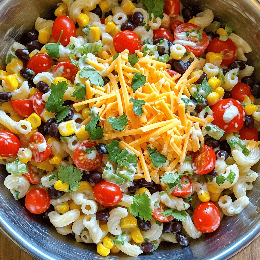 To make your Taco Pasta Salad, start by cooking the pasta. Use elbow macaroni or rotini pasta. Bring a pot of salted water to a boil. Add the pasta and cook until al dente. This means the pasta should be firm to the bite. Check the package for exact timing; it usually takes about 8-10 minutes. Once cooked, drain the pasta in a colander. Rinse it under cold water to stop the cooking process. This helps keep the pasta from getting mushy in your salad. Set the pasta aside to cool.