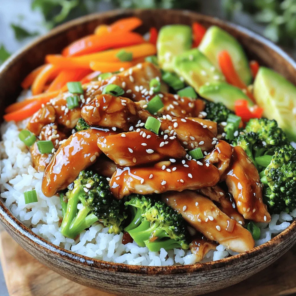To cook chicken for your teriyaki rice bowl, use a skillet or wok. These methods give you great flavor and texture. Make sure your pan is hot before adding the chicken. This helps the chicken to sear and caramelize nicely. Stir the chicken often. This ensures even cooking all around. If you want extra flavor, cook the chicken in the leftover marinade. This adds a rich taste.