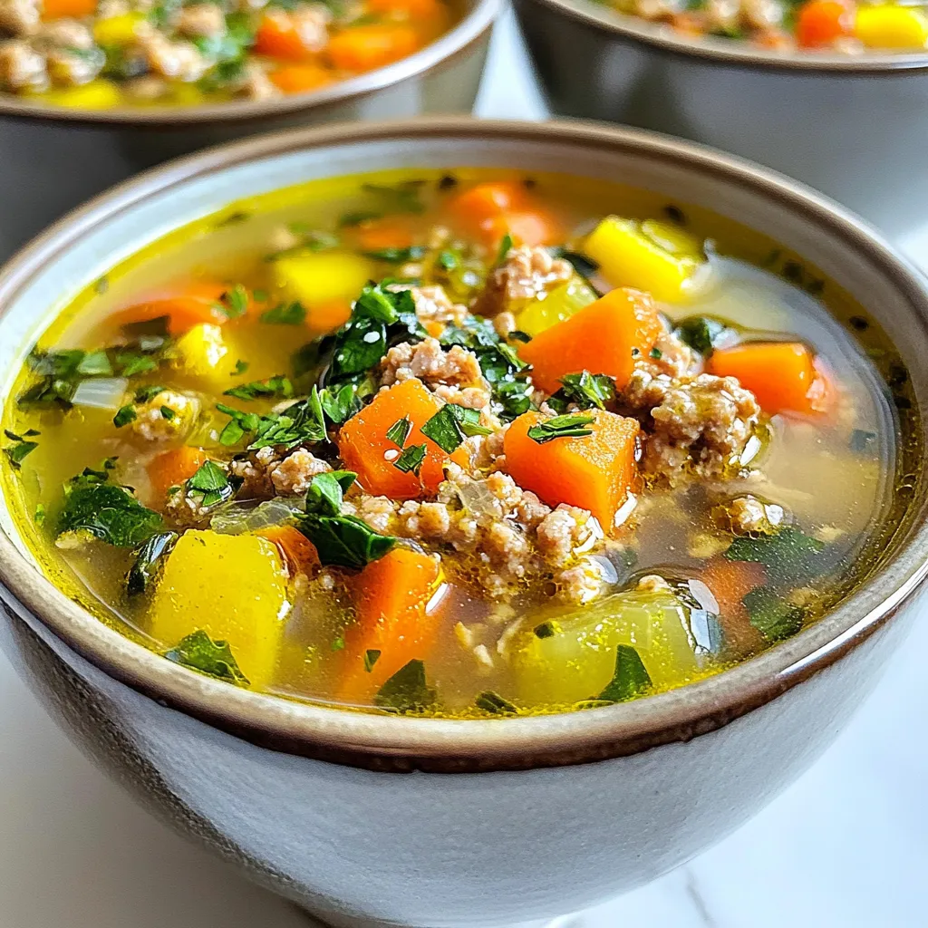 A nutritious and hearty soup packed with lean turkey and fresh vegetables.