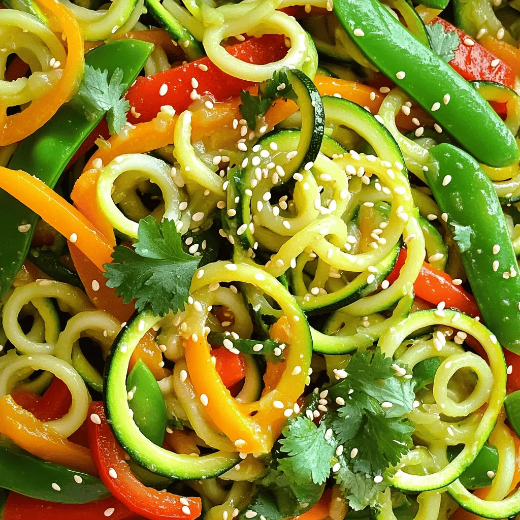 I love using fresh produce for this dish. Zucchini noodles are light and fun. They soak up flavors well. Bell peppers add color and crunch, while carrots bring sweetness. Don’t forget the snap peas; they give you a nice pop!